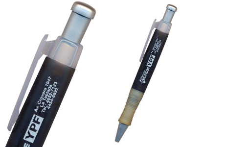 Bolígrafo con cuerpo de color, frost, grip de goma. Pulsador y puntera silver. Clip transparente.