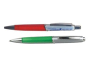 Bolígrafo cuerpo metalizado de color, clip metálico, pulsador y puntera metalizados. Grip plástico de color.