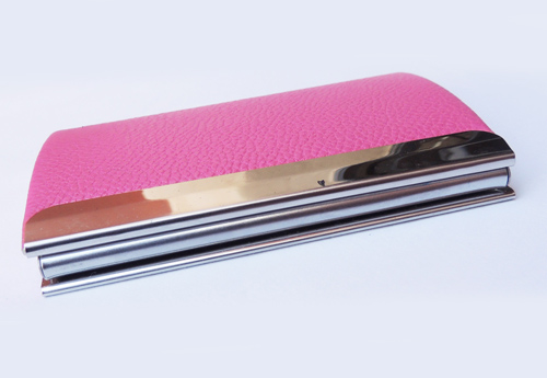 Tarjetero metal combinado con simil cuero.