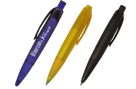 Bolígrafo frost con cuerpo, clip, pulsador, grip y puntera de un mismo color. Grip de goma.