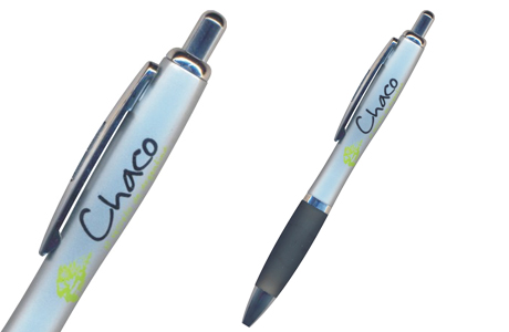 Bolígrafo cuerpo silver, grip plástico de color, clip metálico, puntera y pulsador metalizados.