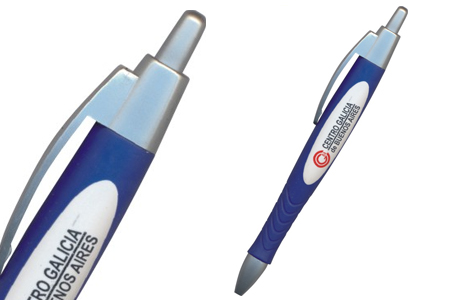 Boligrafo de color con óvalo blanco de ambos lados. Cuerpo engomado. Clip, puntera y pulsador silver.